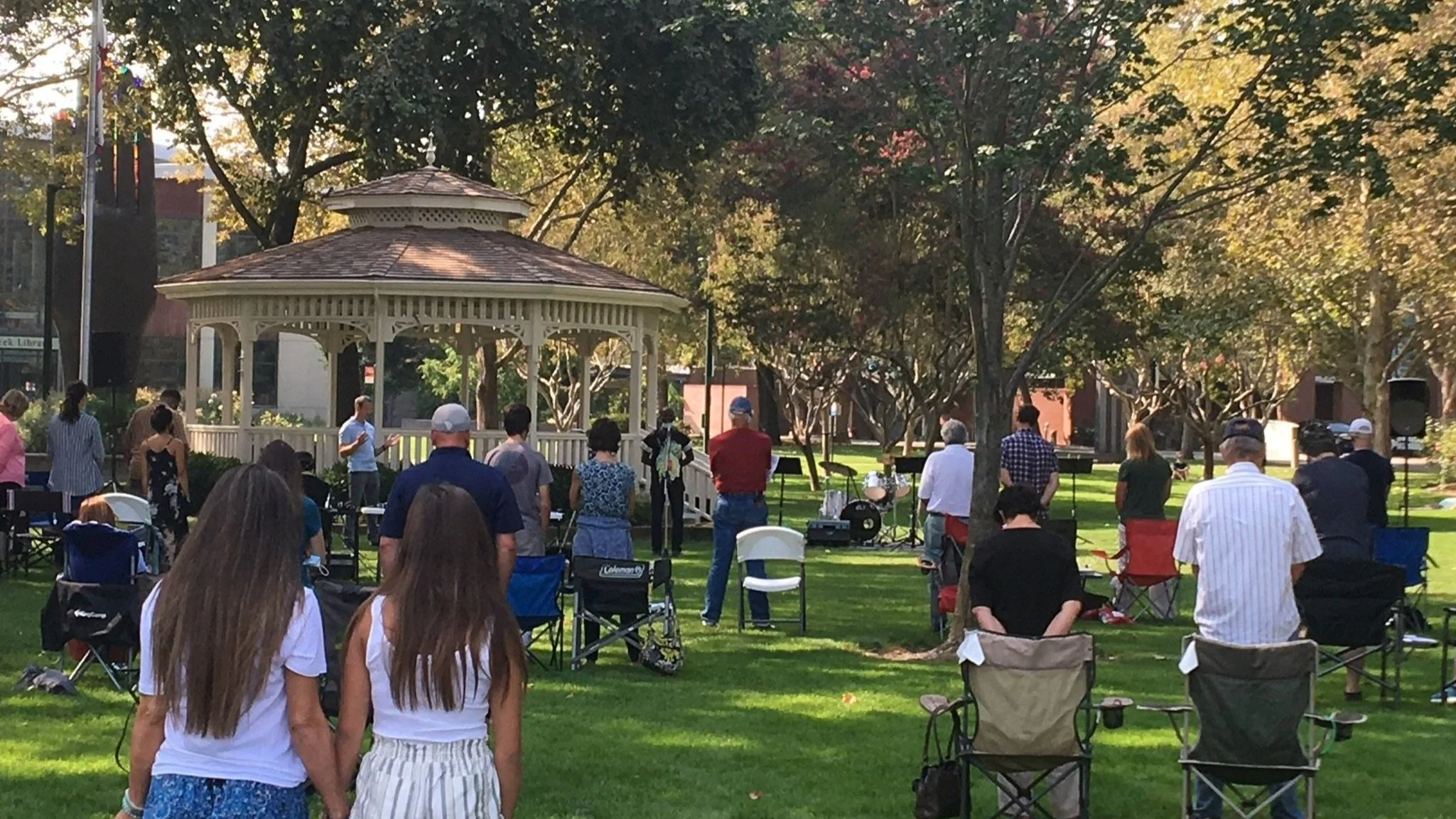 Our main service meets outside at Civic Park in downtown Walnut Creek. Bring your own chair or blanket, and join us at 10AM by the gazebo. If rainy, we’ll be inside the Community Center.